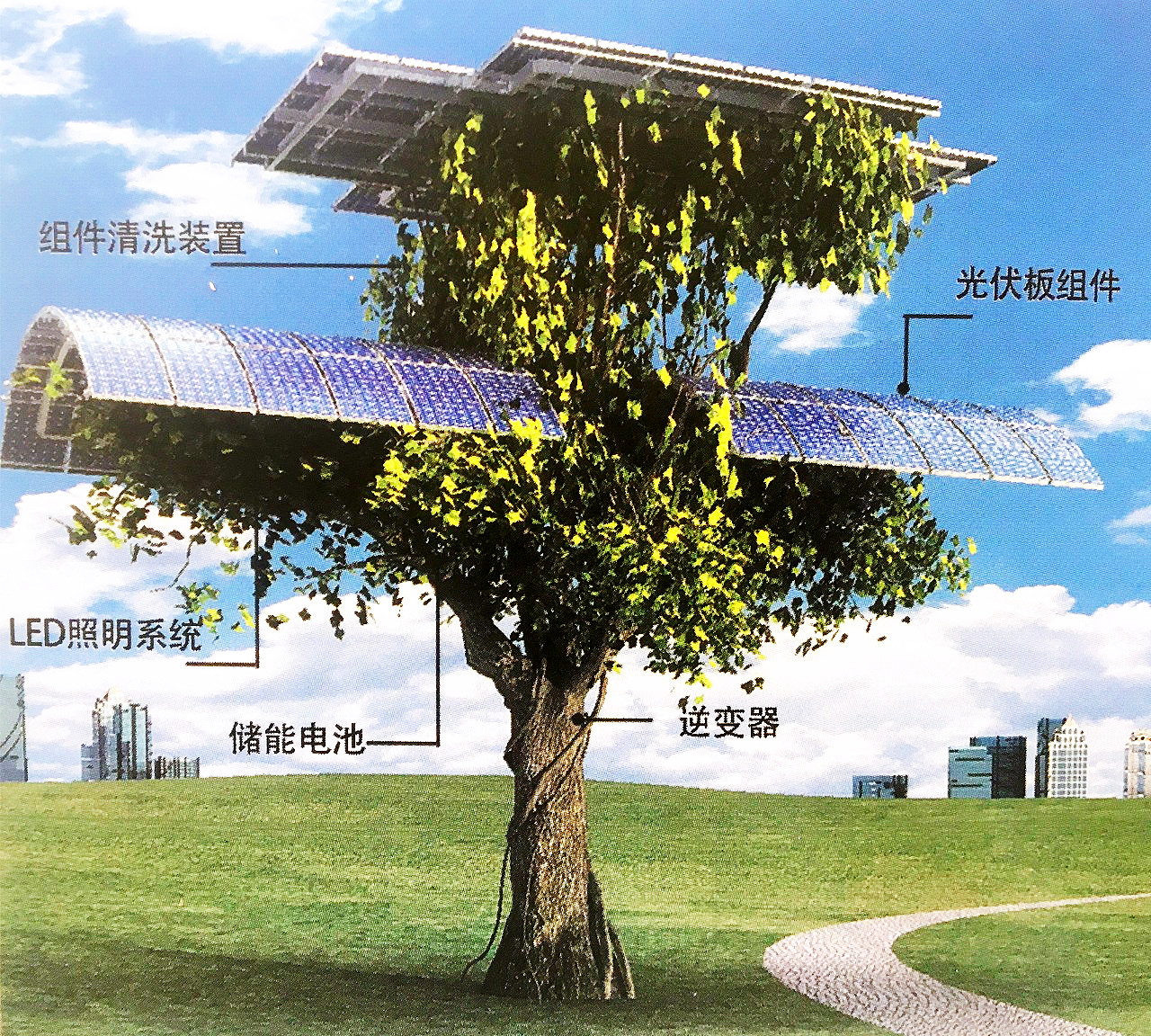 將光伏發(fā)電系統(tǒng)與各種仿生樹相結(jié)合,形成各種功能組合的多用途發(fā)電裝置